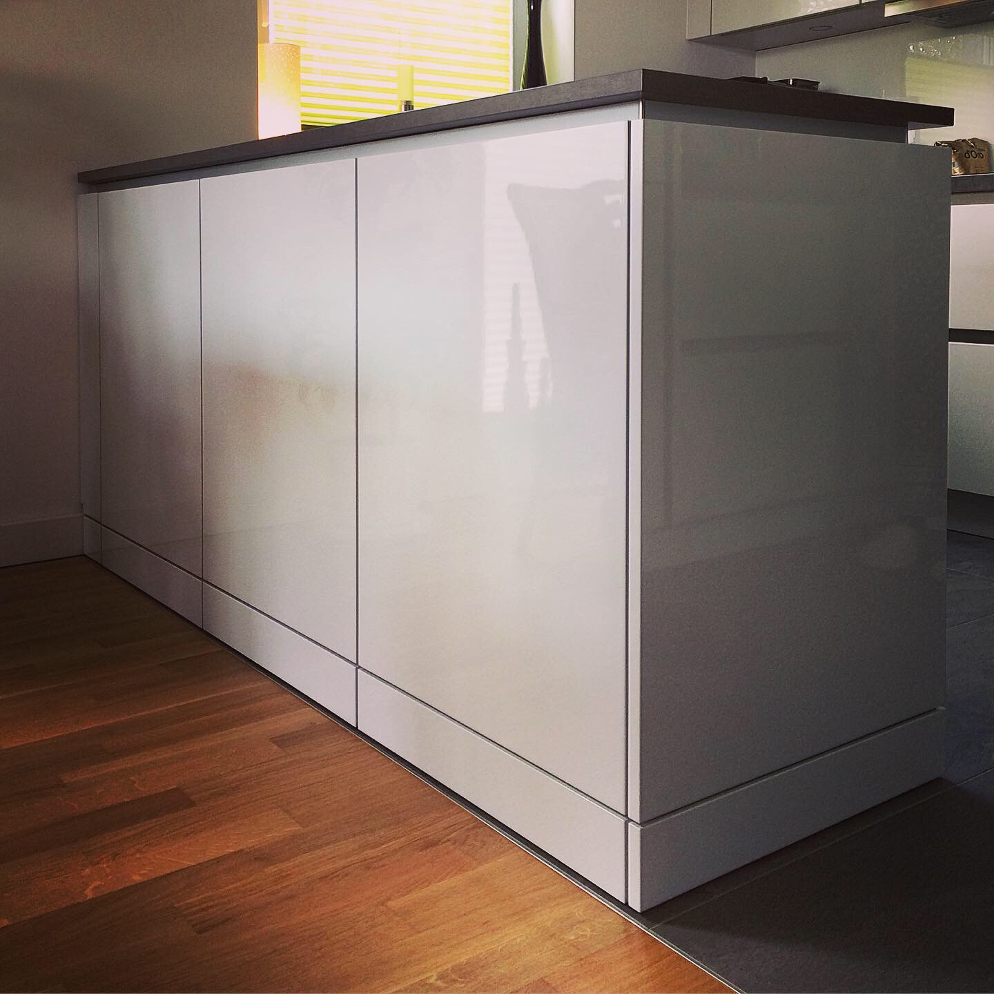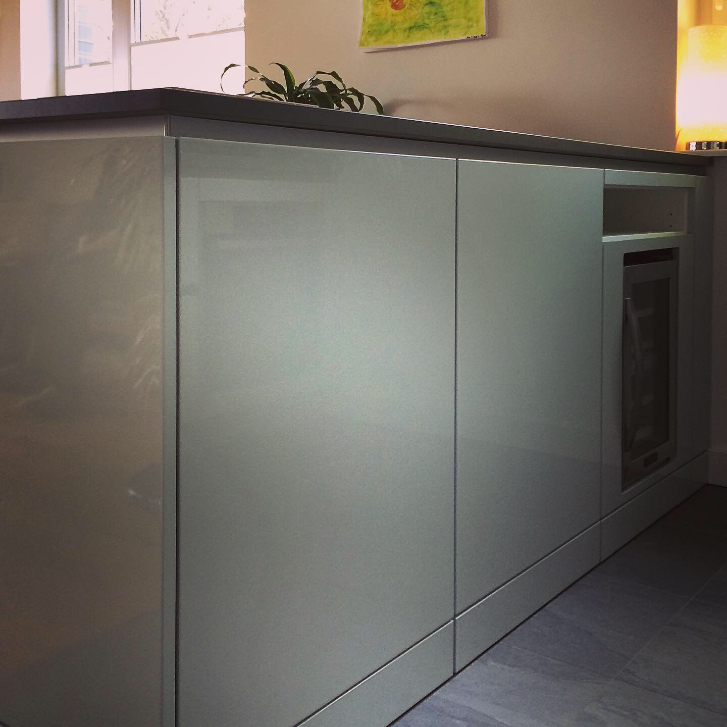 Fronten: Hochglanz lackiert, Arbeitsplatte: Dekor, Betonoptik