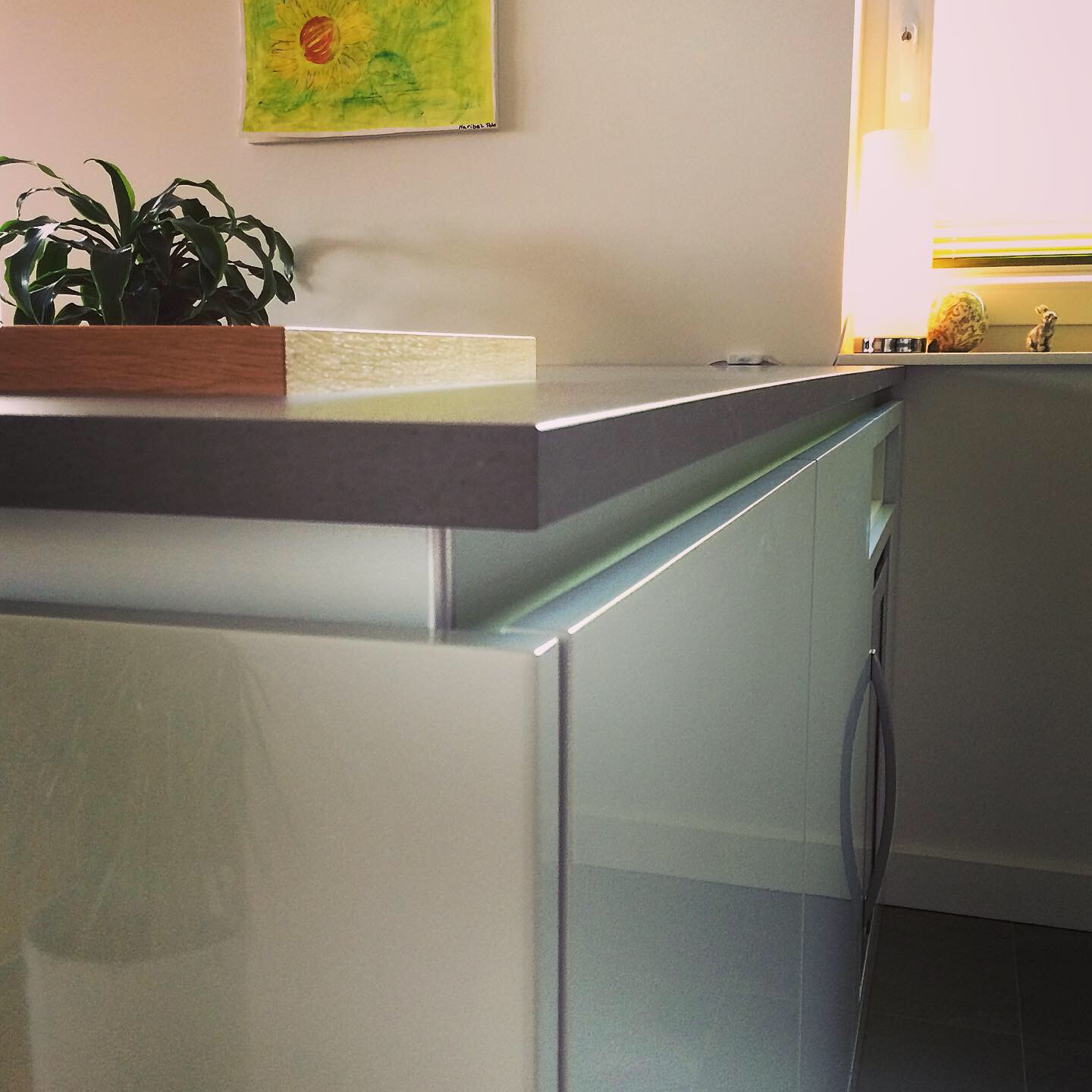 Ein Küchentresen als Ergänzung einer vorhandenen Küche. Der Tresen verhilft der Küche, die sich in einer offenen Raumstruktur befindet, zu mehr Eigenständigkeit. Und, damit auch an sonnigen Tagen wohl temperierte Getränke gereicht werden können, ist zusätzlich ein kleiner Weinkühler mit integriert worden.